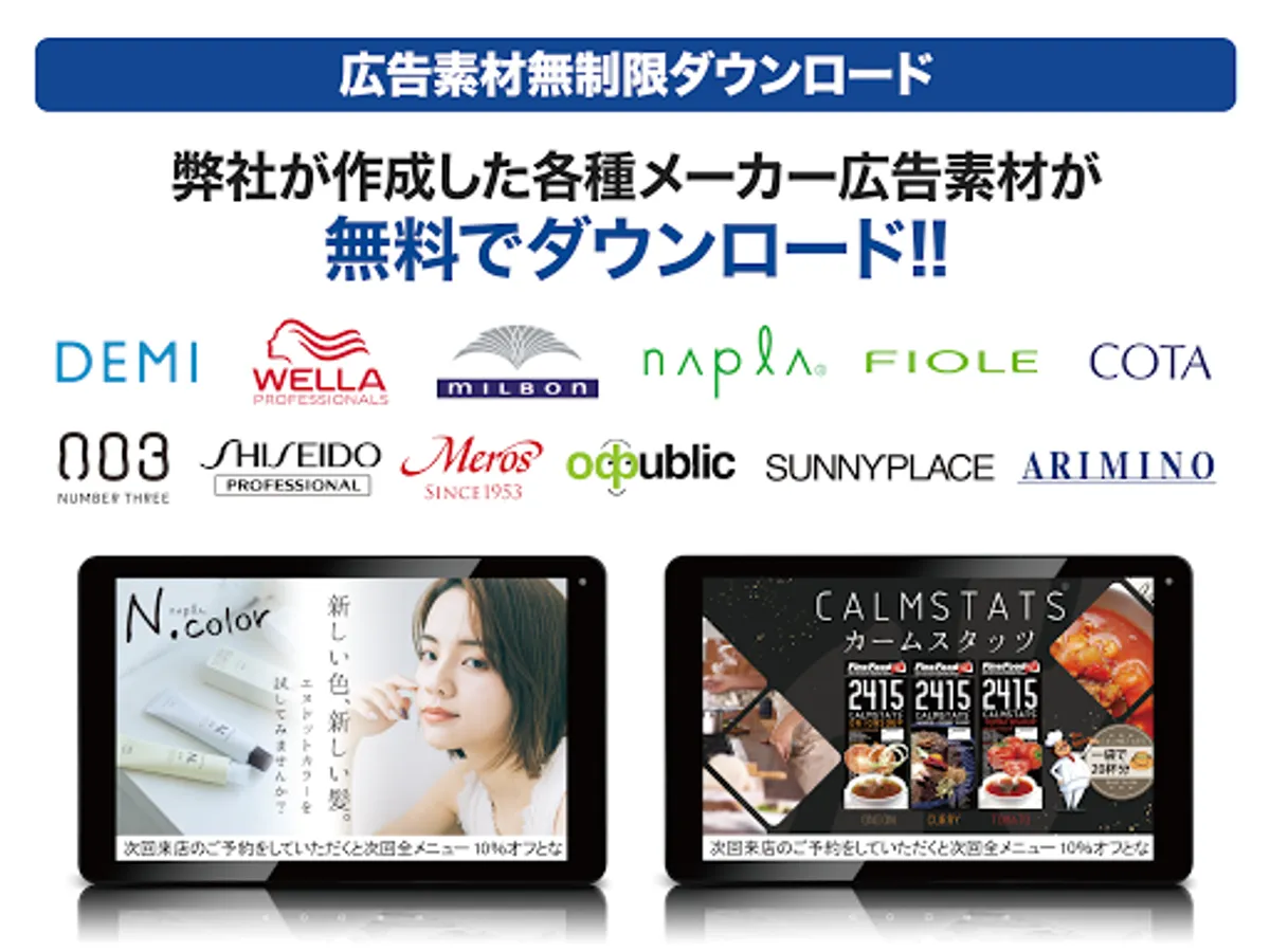 All-you-can-use product advertisements of various beauty makers such as DEMI, WELLA, Milbon, Napra, FIOLE, COTA, 003, Shiseido, Melos, ODP, Sunny Place, Arimino, etc. (Produced at any time by our company)