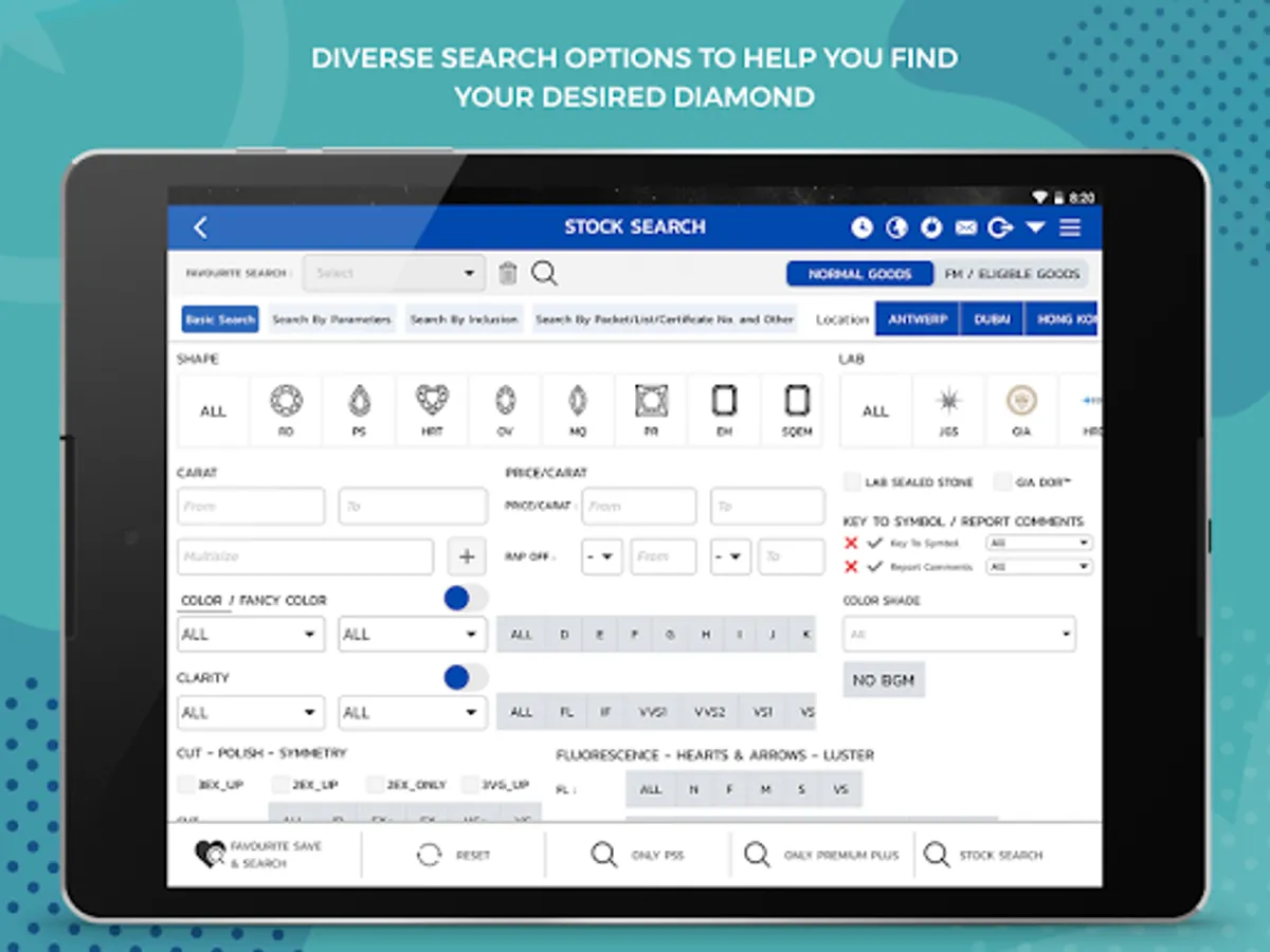 2. Choose from the options on how you would like to search the Diamonds.