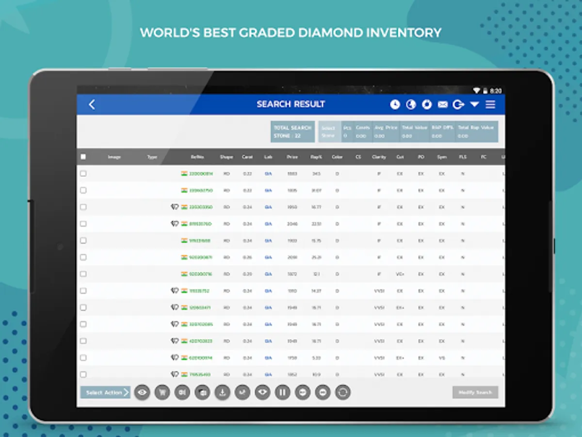 3. Select your preferred stones from your search Result by selecting appropriate check box (e.g. Select, Buy, SL, Mail, Bid/PEP etc) & press Submit button.