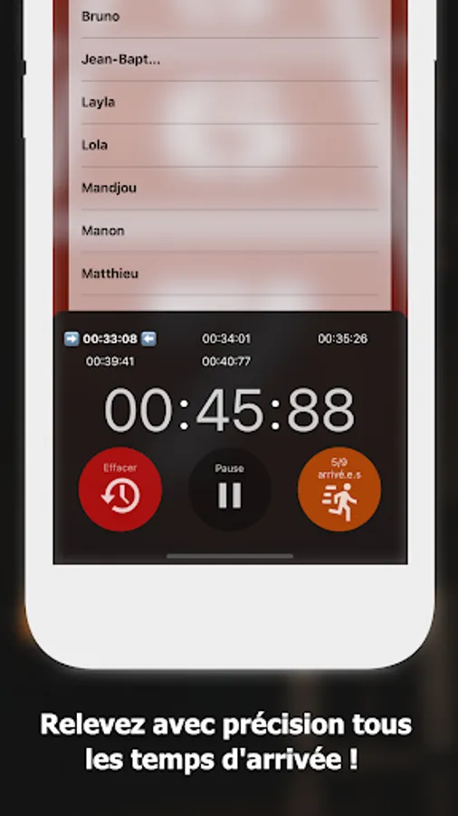 2) Once everyone has arrived, take the time to attribute each time to each athlete who has arrived;