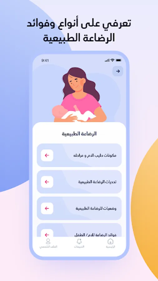 After linking these details with the features of the application, you will receive daily reminders (based on your desire) about the health habits that must be followed related to the health topics covered by the application, in addition to several reminders regarding nutritional and health tips related to your condition (pregnant, breastfeeding, not breastfeeding, the date of your period, marital status, age)