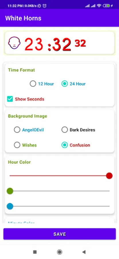 Click on White Horns App and it will open settings. Change settings as per your requirements.