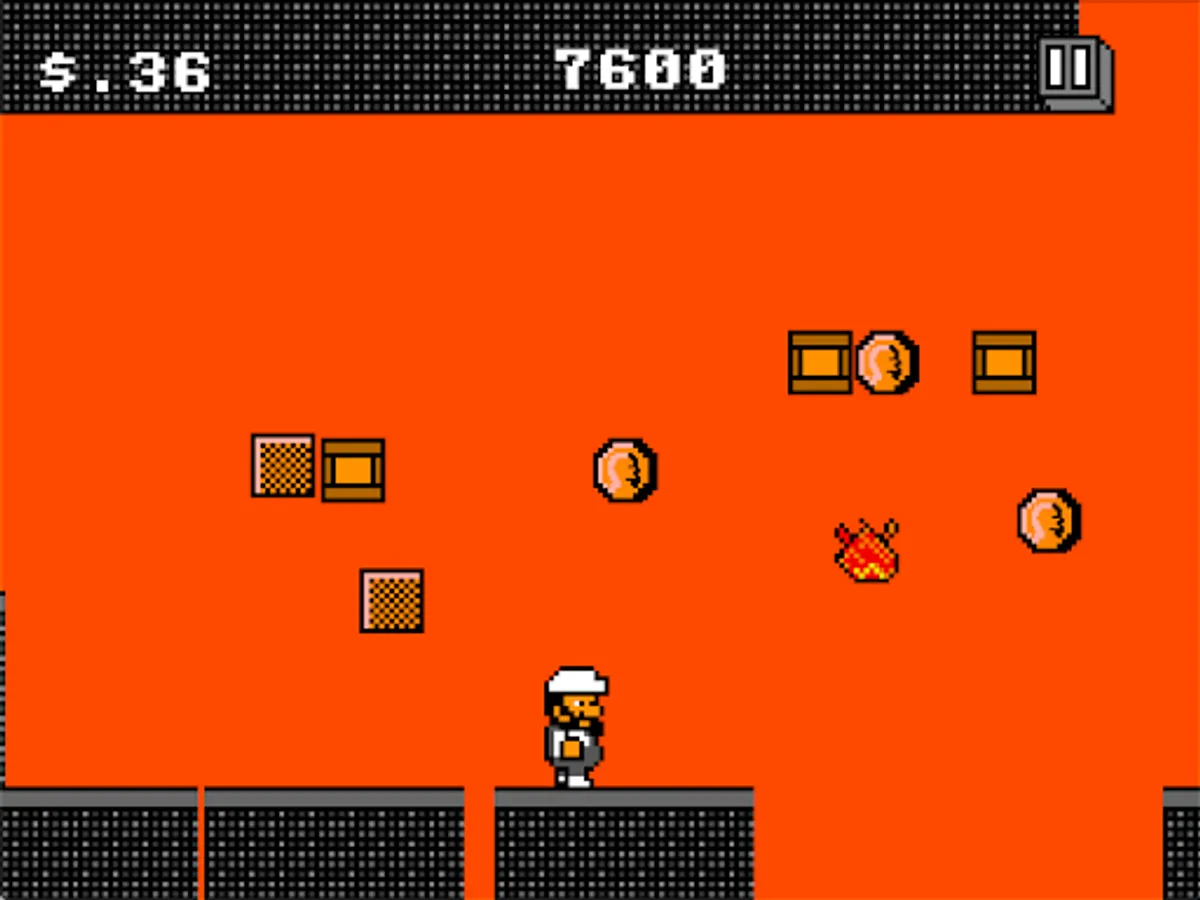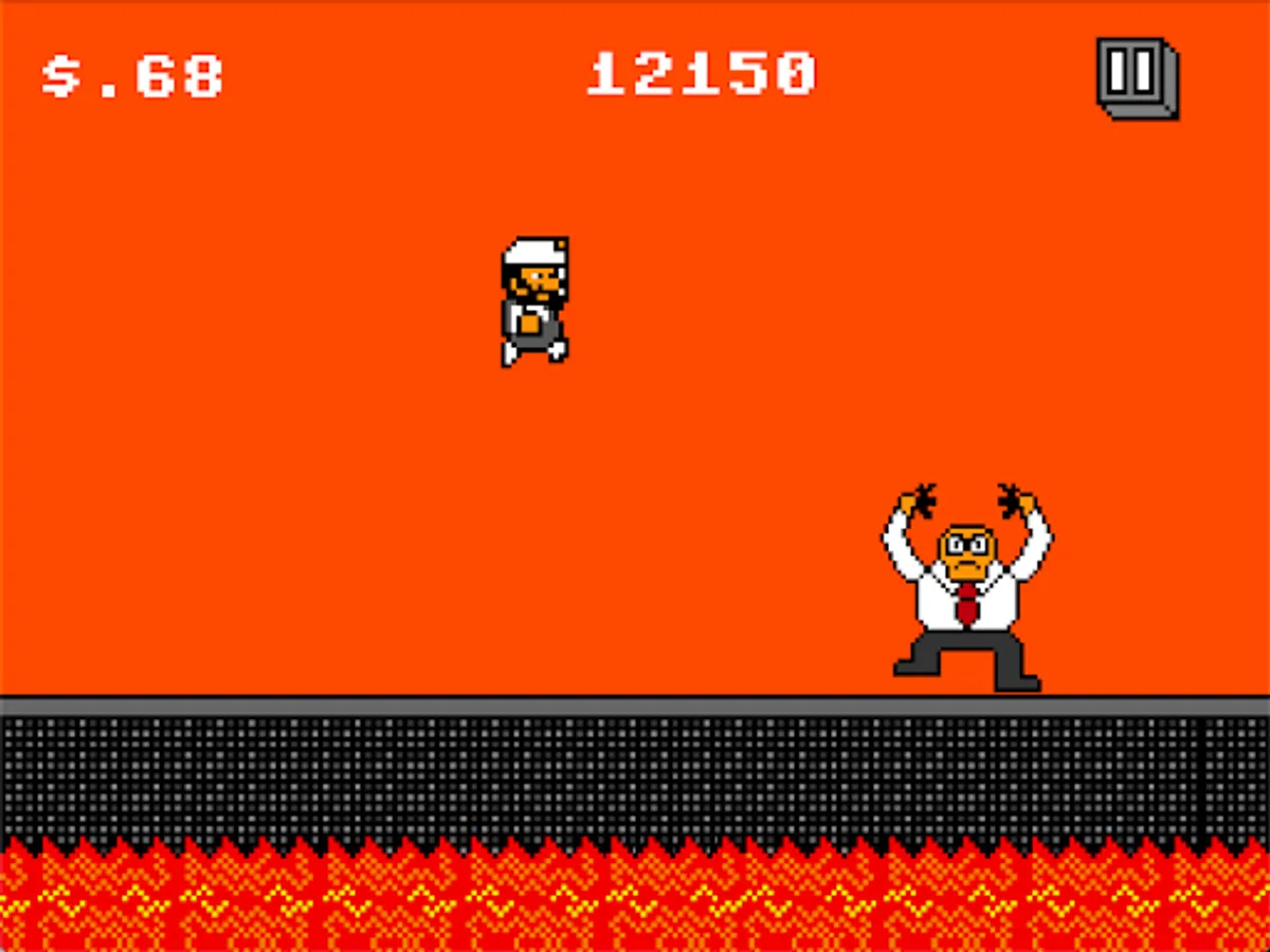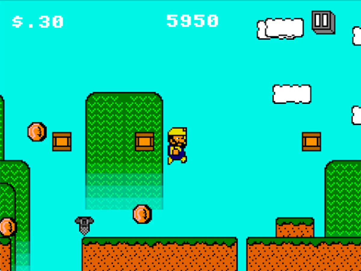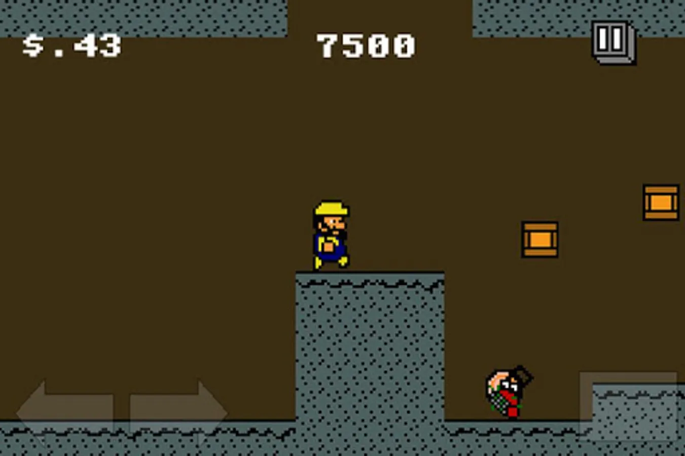 It's another hard day at work for the construction worker, who finds himself once again trapped inside a strange 8-Bit sidescroller platformer world.