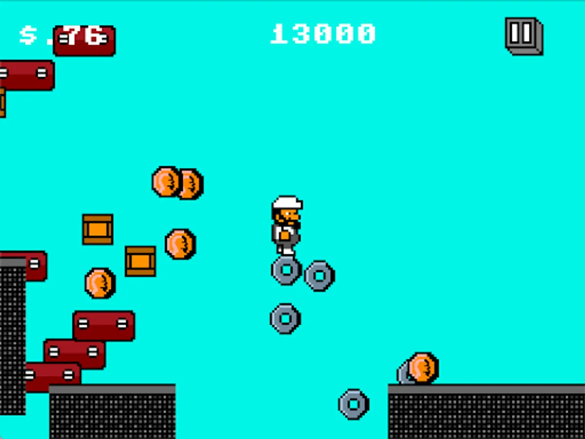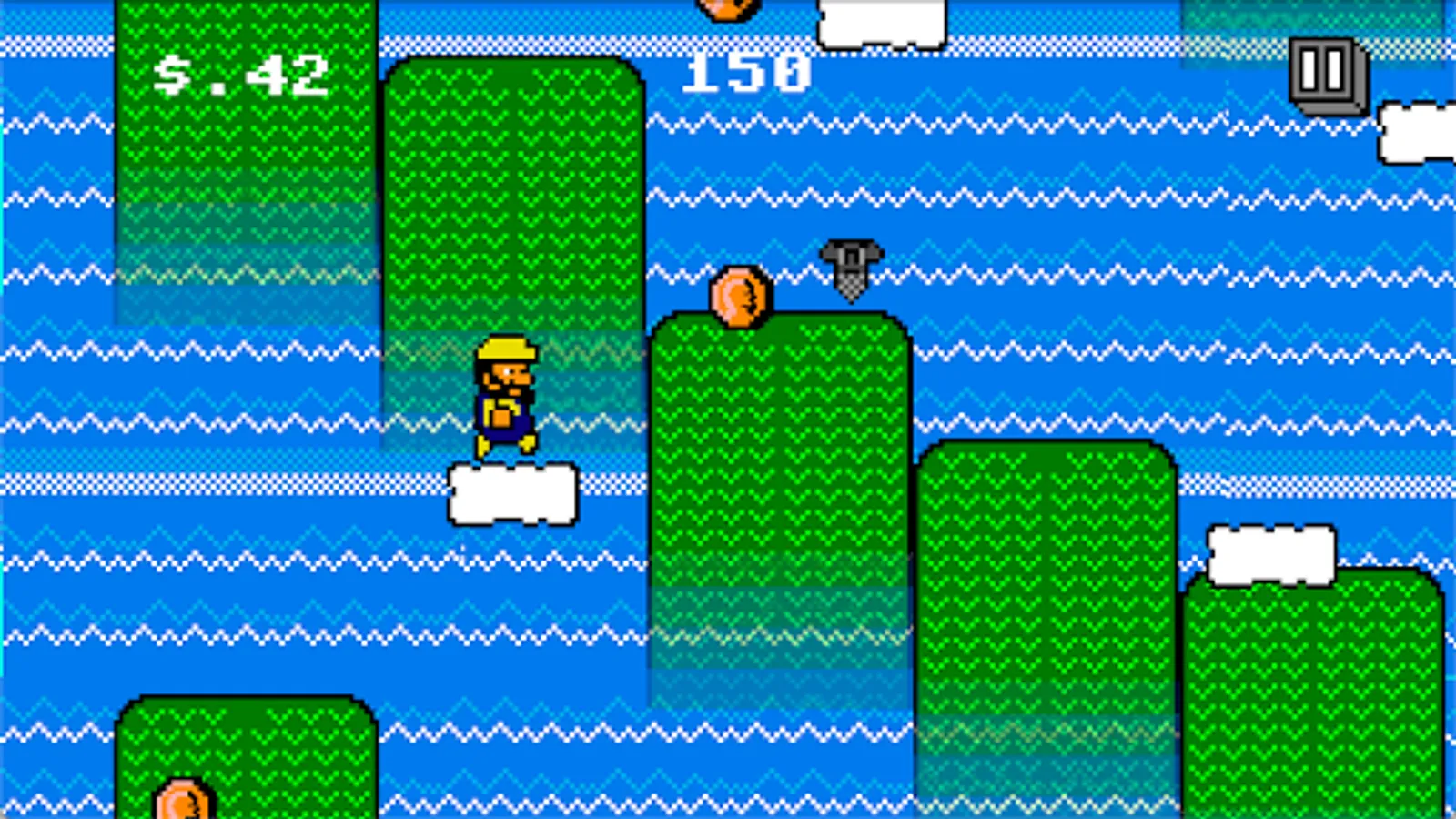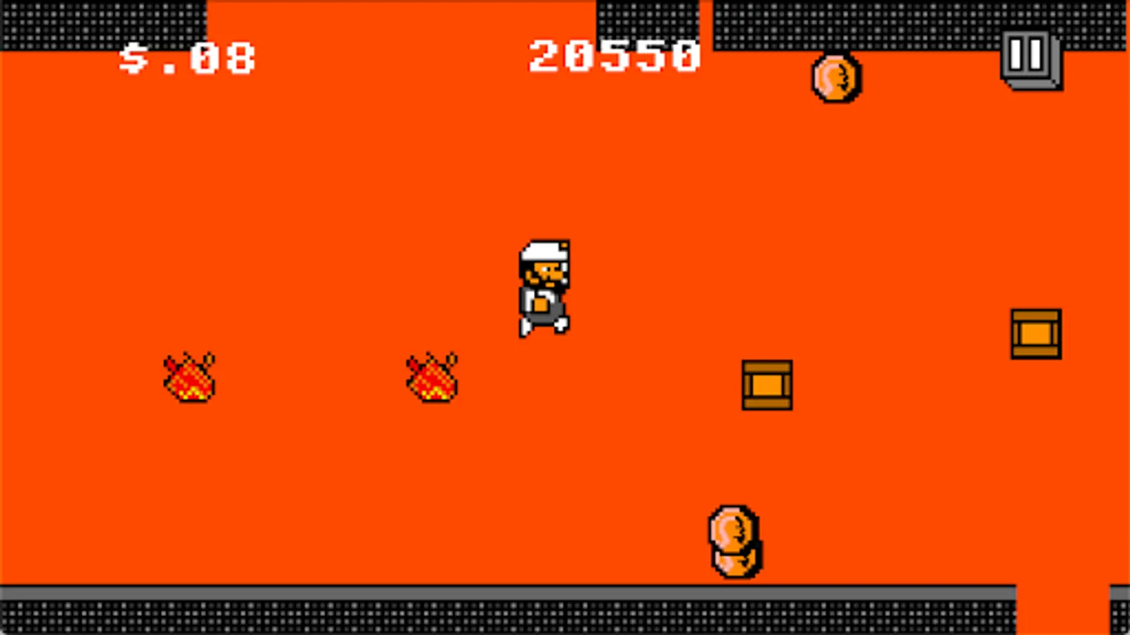 It's another hard day at work for the construction worker, who finds himself once again trapped inside a strange 8-Bit sidescroller platformer world.