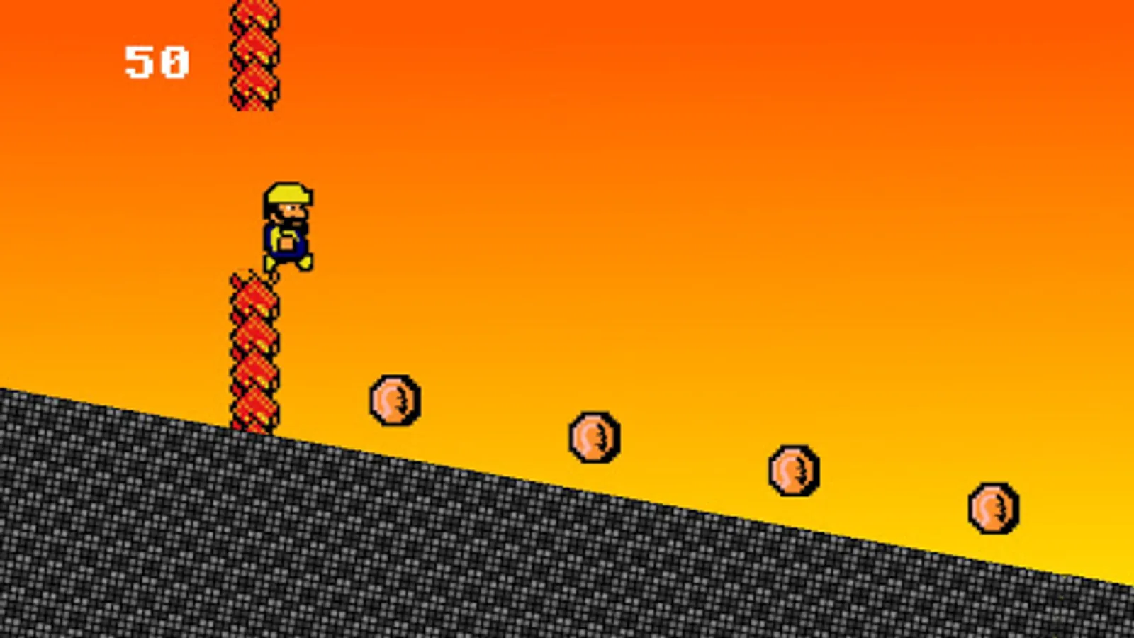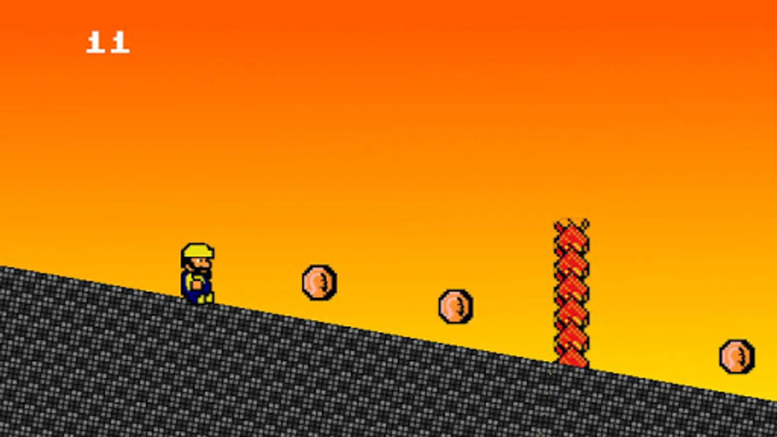 The Construction Worker is having a bad day at work. His boss, the Foreman, is making him slide down into Hell (Overtime). The Construction Worker needs to get money to feed his family. Pick up the coins but watch out! The Foreman has put traps out so he can fire the Construction Worker because he dislikes families. Tap the screen to jump in this endless runner.