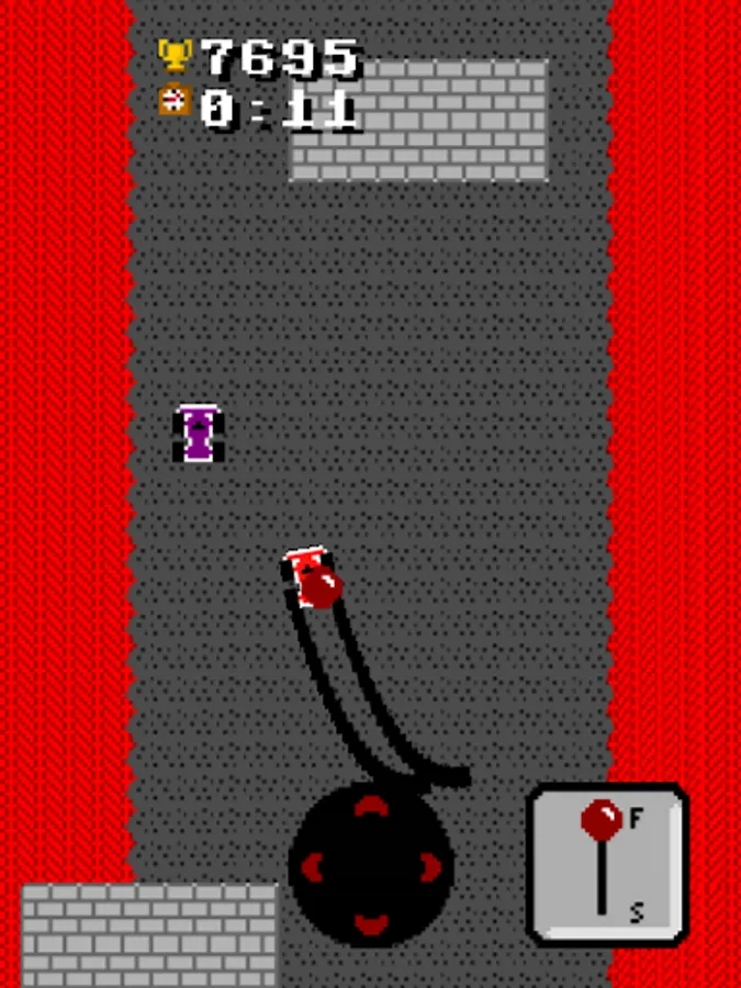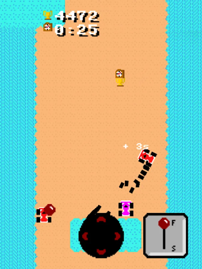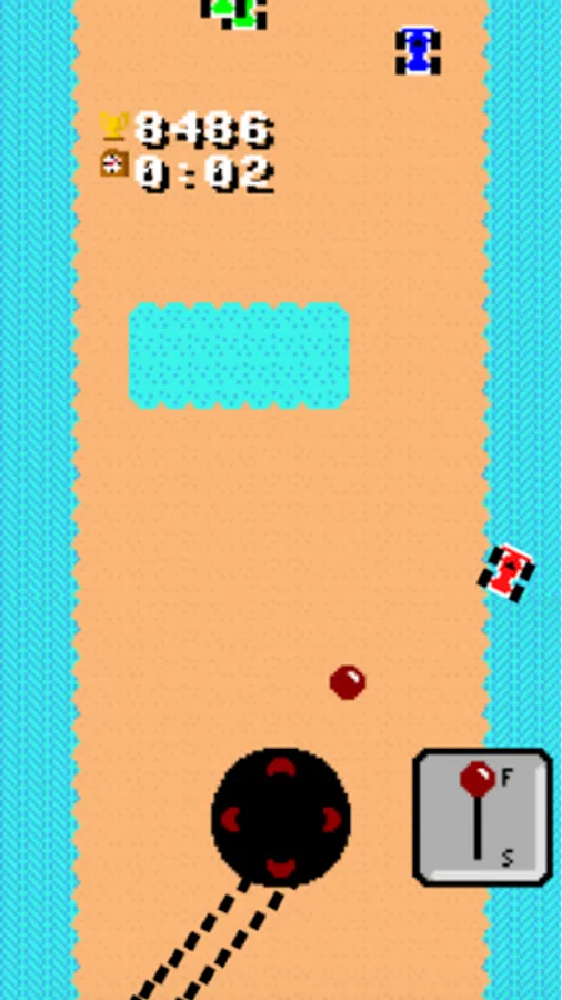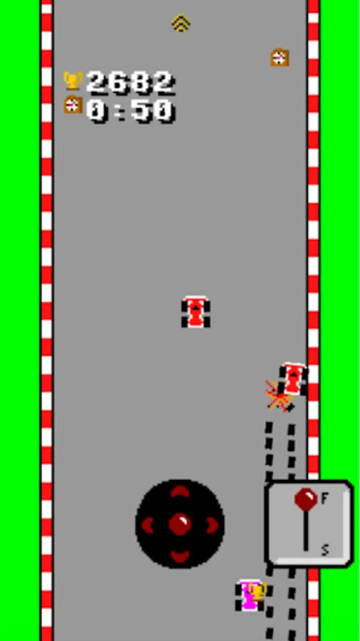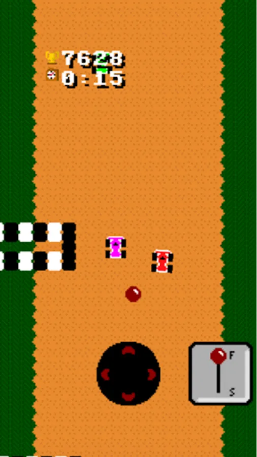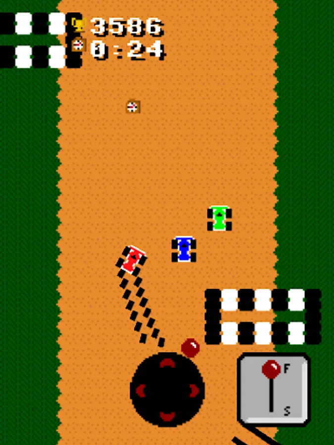 Retro go kart racing game from the 8-bit Era. Use the controller and drive slow or fast. Smash the enemy go karts. Destroying other go karts releases powerups. Get the timers to stay in the race. How far can you go and how much score can you get?