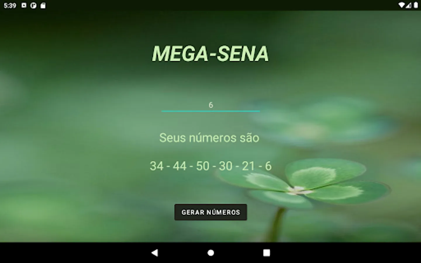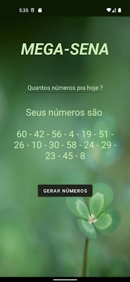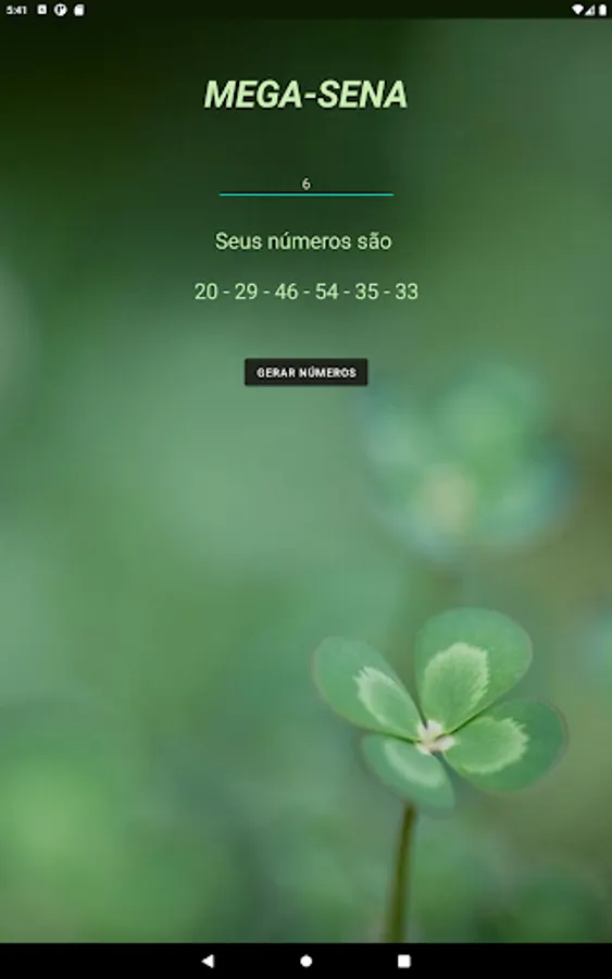 App that generates random numbers for Mega-Sena games.
