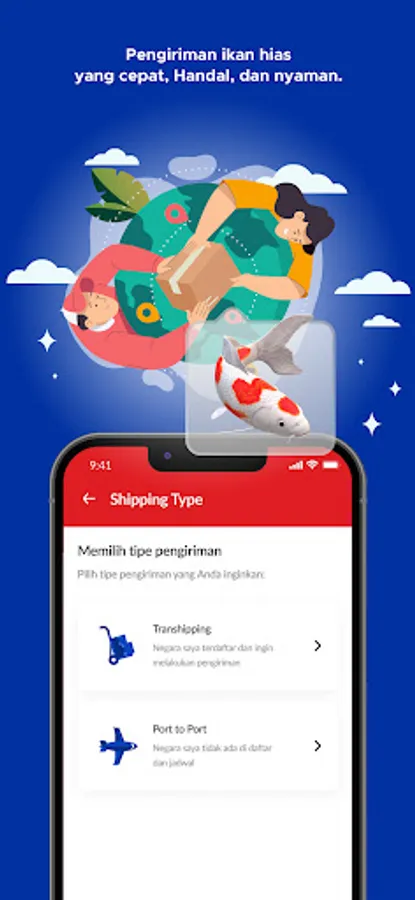 The JBG Transshipping Service application is a practical solution for sending ornamental fish to other countries (International Transshipping Service) fast, trustworthy and reliable in Jakarta, Indonesia.