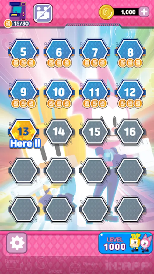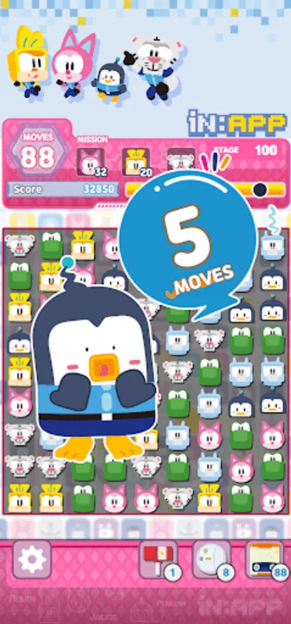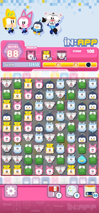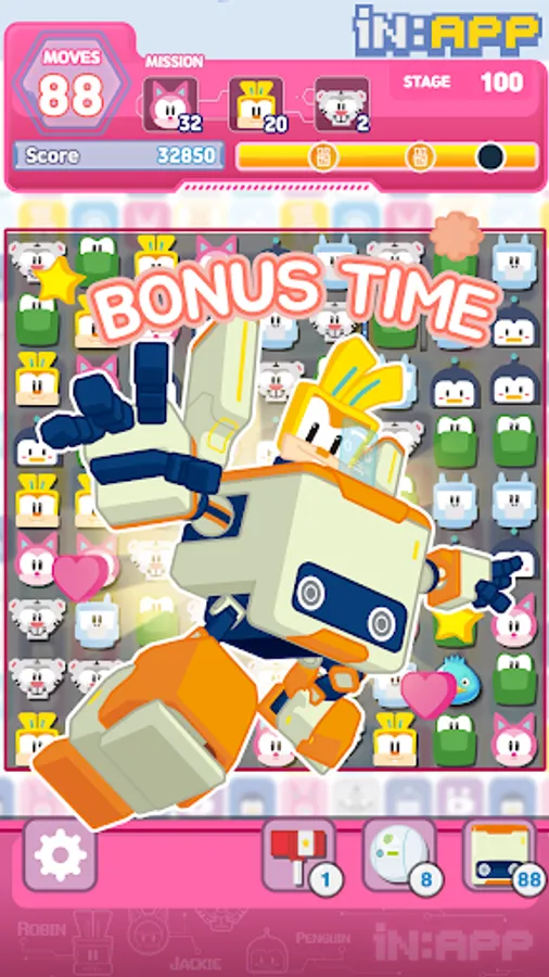 Connect blocks such as Robin, Jackie Chief, and Penguin to clear the mission.