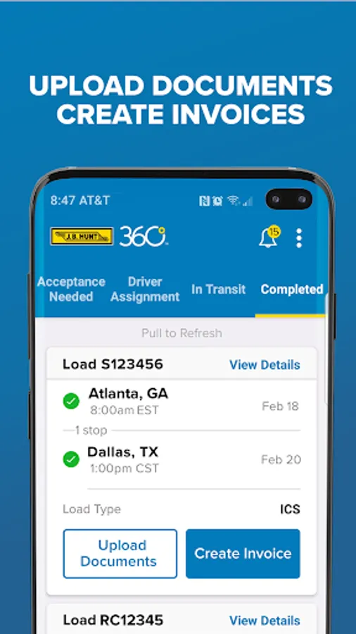 Whether you are an owner-operator or manage an entire fleet, Carrier 360 can help you run your business every step of the way. Carrier 360 is J.B. Hunt’s free trucking app where approved carriers can find available truckloads and manage their contracted power-only and drayage freight.