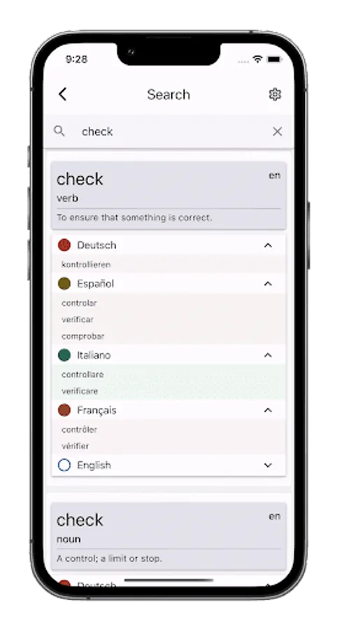 Polydict is a translation and reference dictionary for those who speak or are learning multiple languages. Search for a word in any of the languages you speak, and immediately see translations, hear pronunciations, read definitions, and explore usage-data in other languages.