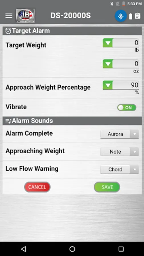 Wireless Refrigerant Scale from JB Industries, Inc. that allows user to view weight measurement. Approaching weight, target weight, and low flow warning are some of the alarms that can be set. Colored themes, unit of measure options, and a job timer or a few of the advanced features included. Data logging is also provided with the ability to save and email logs.