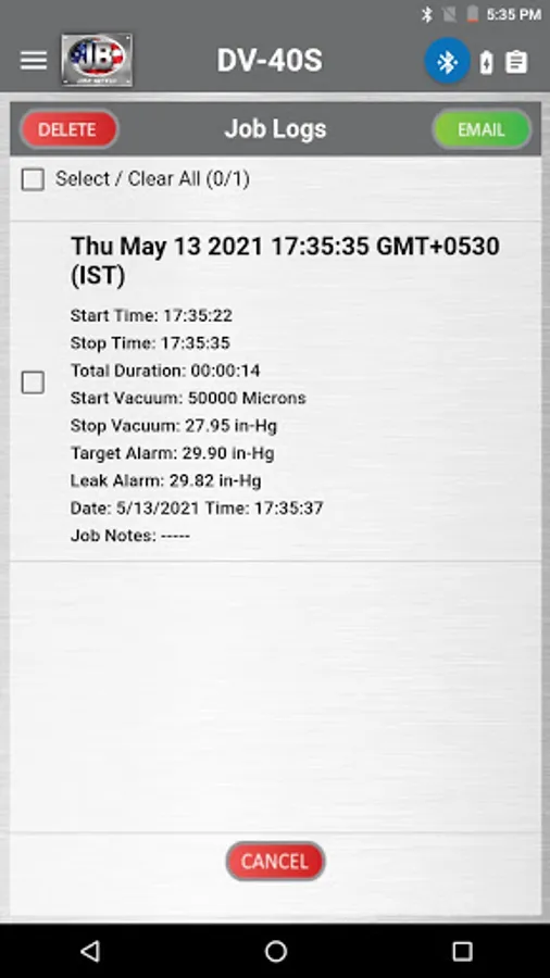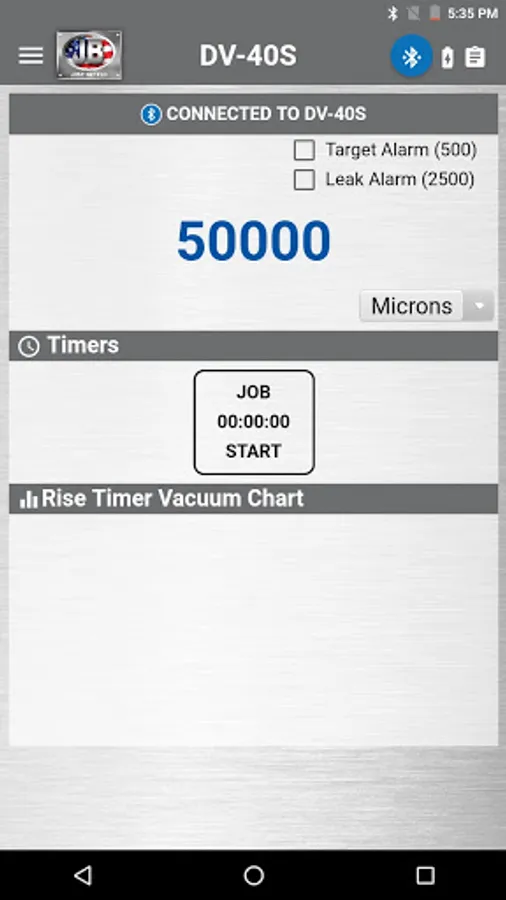 Wireless micron gauge from JB Industries, Inc. that allows user to view vacuum measurement. Alarming capabilities, colored themes, unit of measure options, and job timers are just a few of the advanced features included. Data logging is also provided with ability to save and email logs.