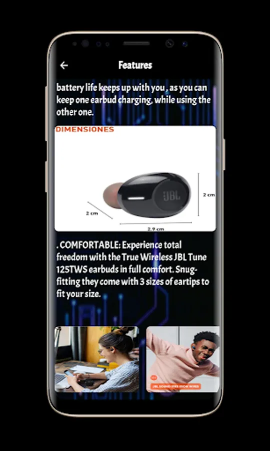 Through the JBL Tune 125 TWS Earbuds Guide application, you can also obtain the JBL Tune 125 TWS Earbuds Guide for use, which it provides in a clear and easy way. You can also view all the details and information of the JBL Tune 125 TWS Earbuds in one place and through the application JBL Tune 125 TWS Earbuds Guide . Comfortable: Experience total freedom with the True Wireless JBL Tune 125TWS Earbuds in total comfort. Comes with 3 sizes of ear tips to fit your needs.