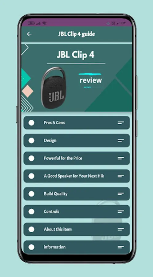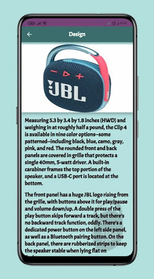 With the JBL Clip 4 Guide app, you can watch the JBL Clip 4 video, which gives you the opportunity to see the look and feel of the JBL Clip 4, our Ultra-Portable Bluetooth Wireless Speaker Guide and many different features, including RICH JBL ORIGINAL PRO SOUND: JBL Signature
