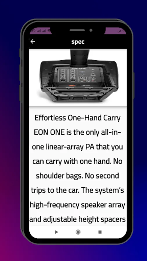 JBL EON ONE guide app content....