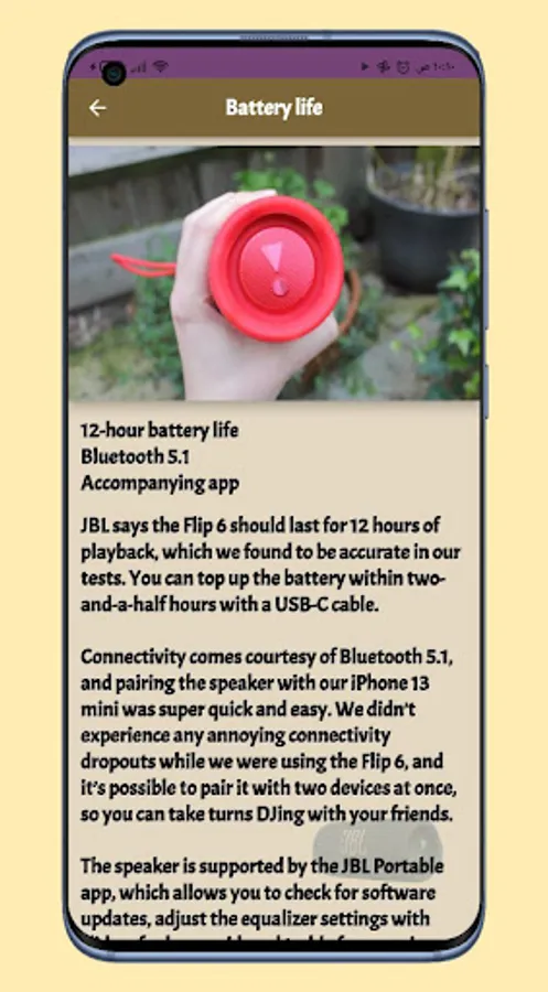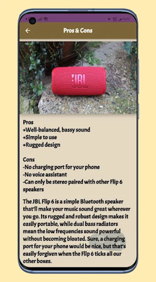 Where, through the application, how to setup and how to connect the JBL Flip 6 to the mobile Bluetooth, through the application, you can review all the specifications and description of the JBL Flip 6