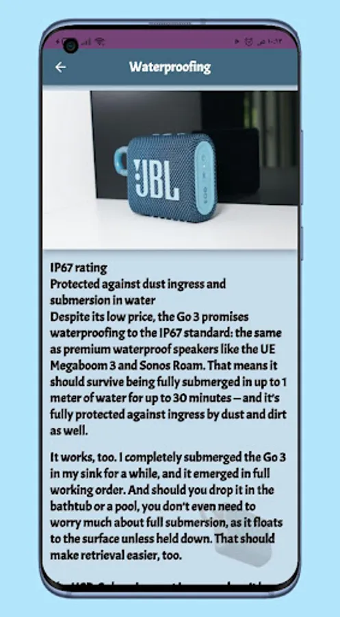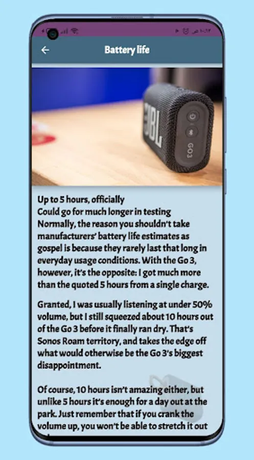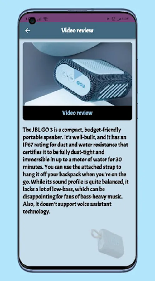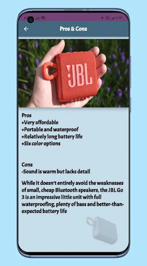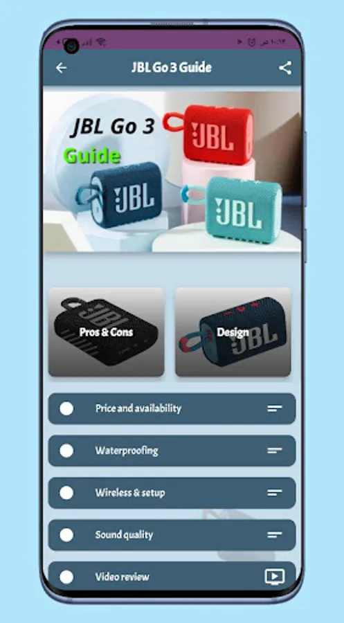 Through the JBL Go 3 application, you can review the specifications of the jbl flip 6 The application contains many information and features of the Jbl Go 3 that you can get clearly and easily. Also, with Jbl Go 3 Guide app, you can watch Jbl Go 3 video