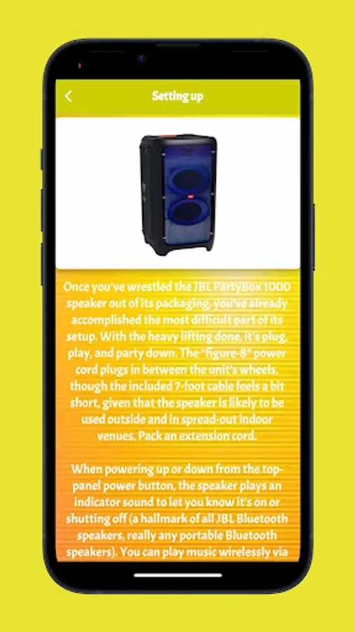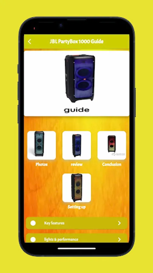 The application JBL PartyBox 1000 Guide provides you with many information for JBL PartyBox 1000 Guide