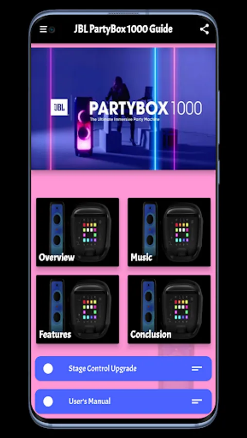 JBL PartyBox 1000 Guide app contents