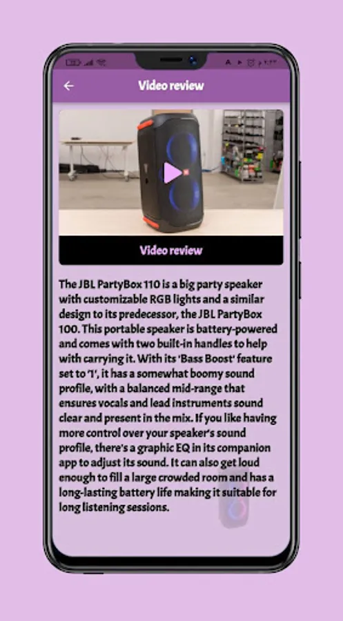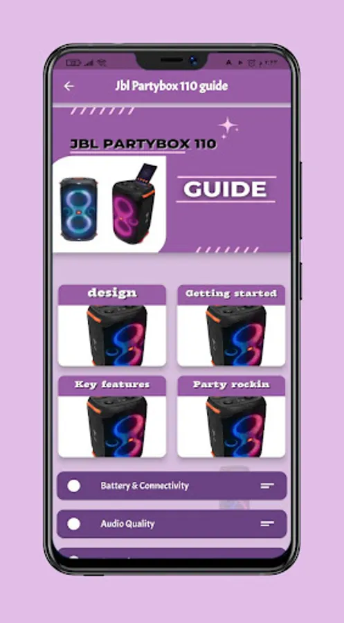 Through the application, you can watch a video review of the specifications and how to make the Jbl Partybox 110 to know the functions of the jJbl Partybox 110 speaker, try our application.