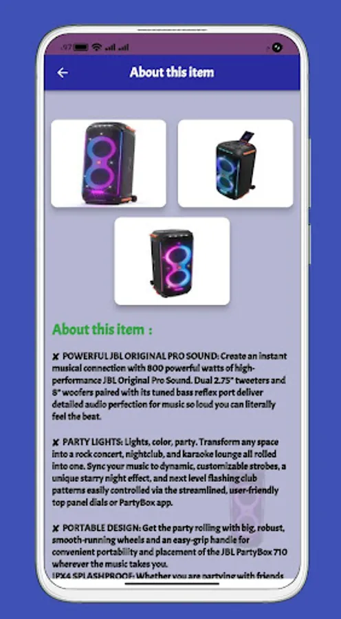 - Contains many pictures to see all designs of JBL Partybox 710