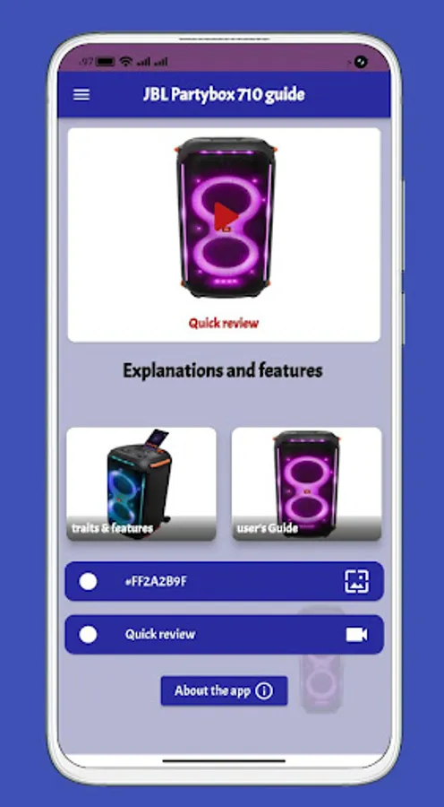 in JBL Partybox 710 app we supported many sections of content that will let you now more information about JBL Partybox 710
