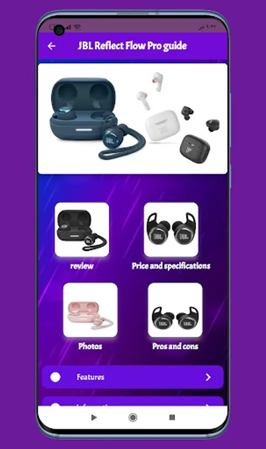Features of the application of the most JBL Reflect Flow Pro guide :