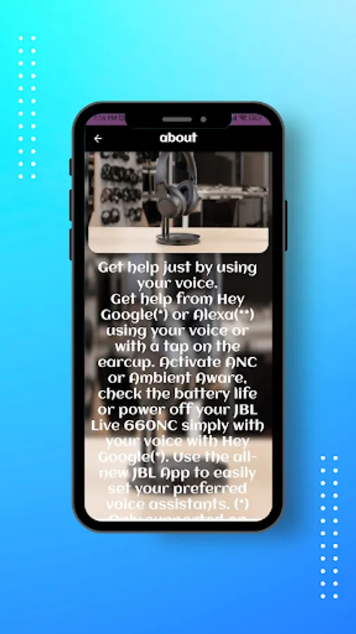 Personalize your Jbl Live 660NC headphones with the My Jbl Headphones app which allows you to change the EQ sets select your preferred Voice Assistant set your Smart Ambient settings and much more