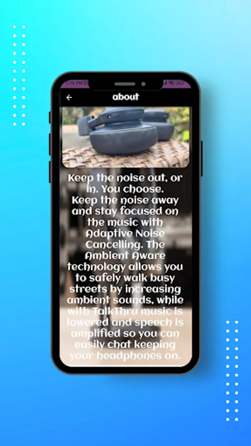 Adaptive Noise Cancelling lets you stay in the zone Smart Ambient keeps you aware of your surroundings and TalkThru amplifies speech so you can easily take calls without taking off the headphones