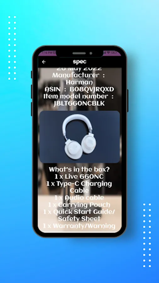 Items delivered: 1x Jbl LIVE 660NC wireless on-ear headphones with Active Noise Cancelling 1x carrying pouch 1x USB-C charging cable 1x audio cable 1 x Quick-Start Guide and Safety Sheet in white