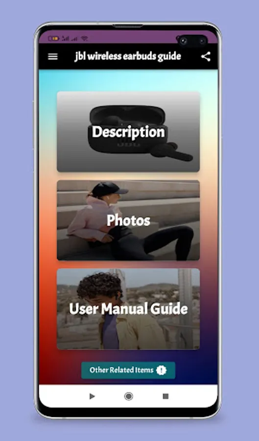 This mobile app is jbl wireless earbuds guide . It is not an official app or part of it.
