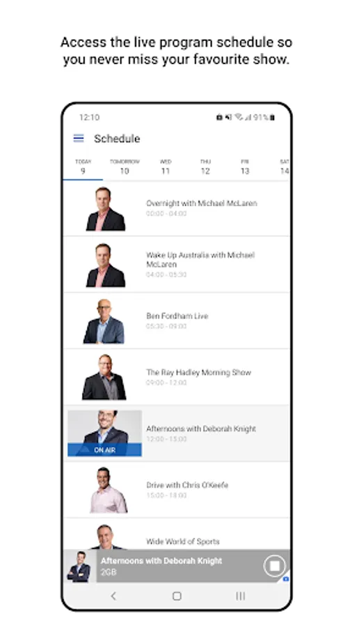 Listen to your favourite presenters live with the studio audio feeds, hear the hourly news bulletins, read and listen to the latest news and interact with your favourite 2GB presenter, all from the convenience of a single app.