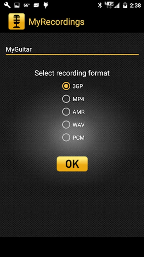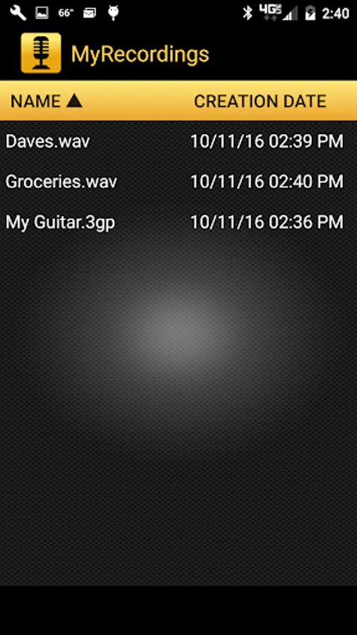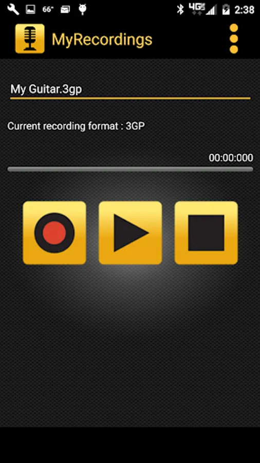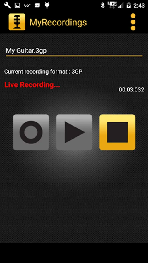 Unlimited record time and file size (limited only by your SDCard size), recorded files are saved to your external storage under the ‘ MyRecordings’ folder.