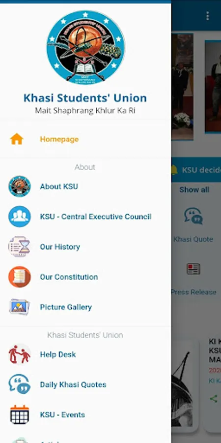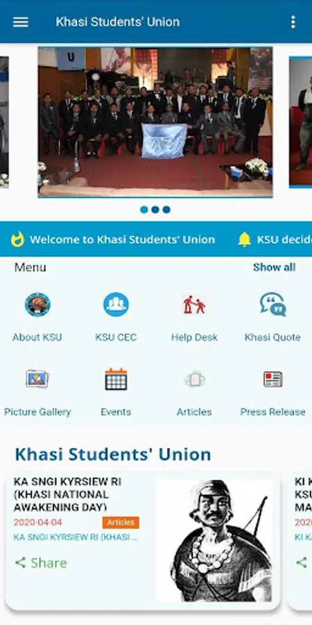 The Khasi Students’ Union (KSU) established in 1978 is a brain-child of a group of students to safeguard the rights of the Khasi community through a common platform. An apolitical organization which strives towards a noble aspiration for the solidarity and unity of the Khasi people, the Khasi Students’ Union plays a pivotal role for the empowerment and betterment of the Khasis in every aspect. The students from the North Eastern Hill University (NEHU) and different colleges of Meghalaya with a common objective assembled at the Khasi National Durbar Hall, Mawkhar, Shillong, deliberated, and decided to form and name the organization as the ‘Khasi Students’ Union’. The Union was thus founded on the 20th March 1978, by a group of students who were patriotic and had a deep sense of responsibility and with a passion to unite the students belonging from u Khynriam, u Pnar, u Bhoi, u War, Maram, Lyngngam and Diko sub-groups who formed the Khasi community. The motto of the Union was adopted as ‘Mait Shaphrang Khlur Ka Ri’ meaning ‘Strive Forward Children of the Soil’. The Union had since been led by selfless leaders who have sacrificed their lives and comfort for the service and cause of the Khasi people and the Hynniewtrep nation.