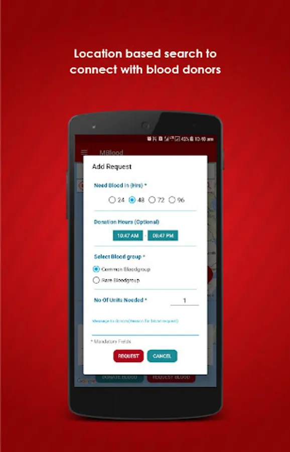 No Fees: MBlood uses your phone's network to let you find and connect people to blood requirements. MBlood doesn't charge any fees for its services, and you don’t have to pay to any blood donor as well for any blood donation. There are no subscription fees to use MBlood.