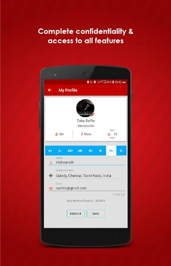 And More - Saves your blood donation history, can see current blood requirements, Safe Searching, Easy Sign Up and Login