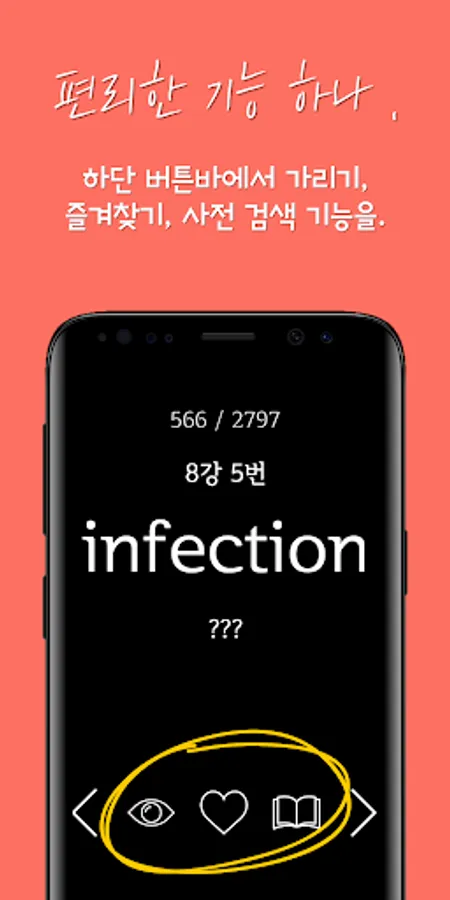 When you memorize only in a certain order, you may not memorize words but memorize meanings in order. At this time, if you register the memorized words in your favorites, and use the semantic masking function in random order, it will be the perfect combination for learning English words.
