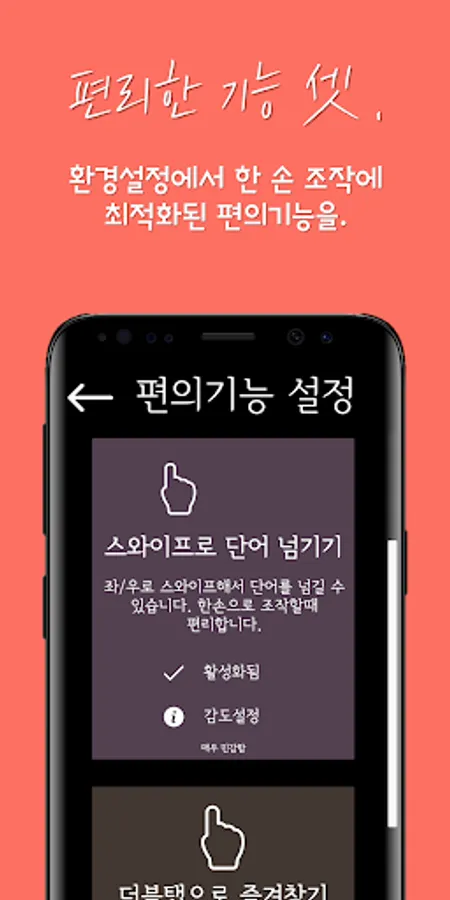 Swipe through words and double tap to bookmark your phone in one hand. You can check in the environment settings. You can use the main function with your thumb?