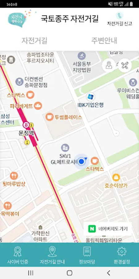 Provides a location-based real-time traversing bicycle path guide service using a smartphone,