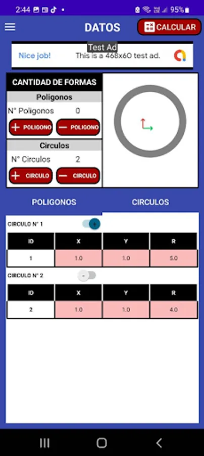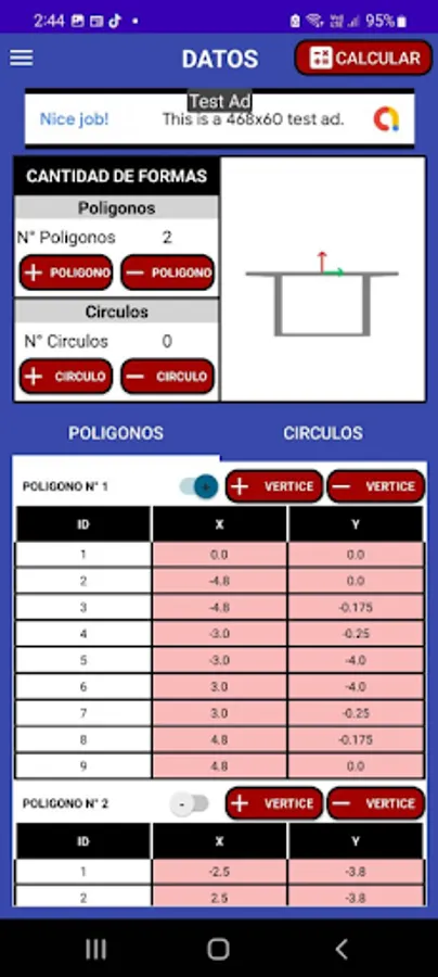 El área puede ser un polígono indicando las coordenadas de sus vértices, circular indicando las coordenadas de su centro y su radio. También pueden definirse áreas conformadas por la suma y/o sustracción de una serie de áreas poligonales y/o circulares. Es importante tener en cuenta que los vértices polígonos deben ser ingresados en sentido antihorario.