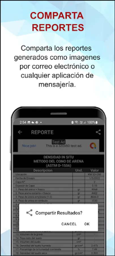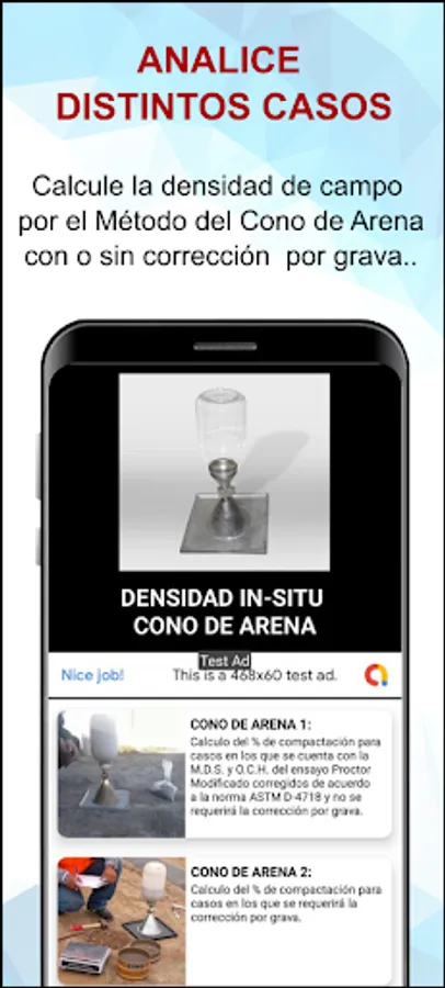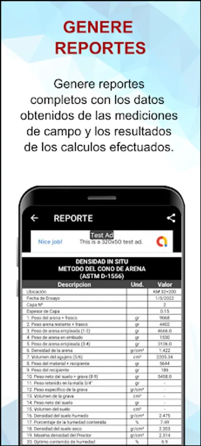 It includes the option of calculating the density with the replacement of the gravel according to its specific weight.