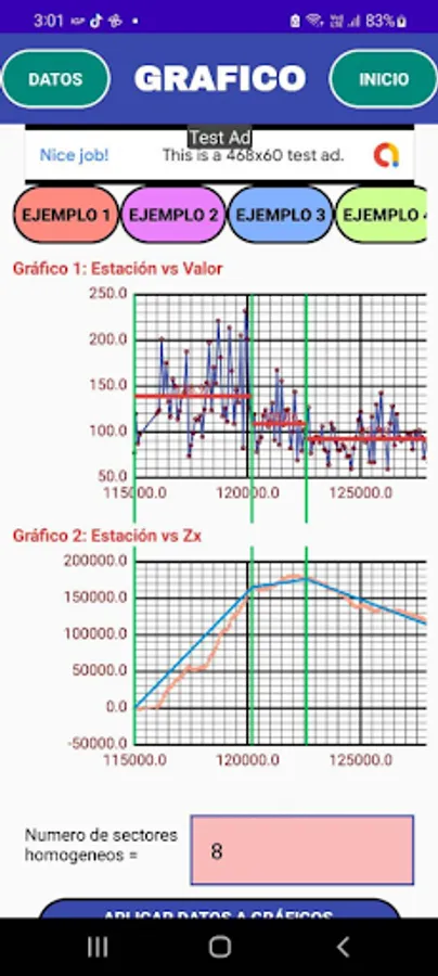 - According to the graph Progressive vs Zx, indicate the number of homogeneous sectors and the progressive that delimits each homogeneous sector.