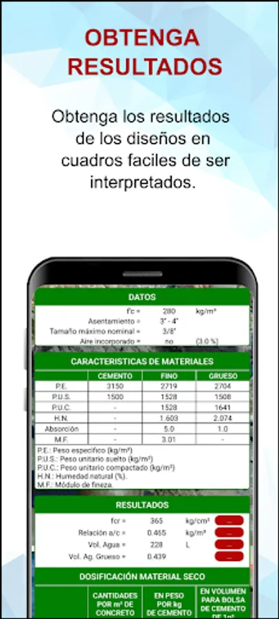 Hydraulic Concrete Mix Design according to the guidelines of the ACI 211 standard for normal conditions with compressive strengths less than 400 kg/cm2.
