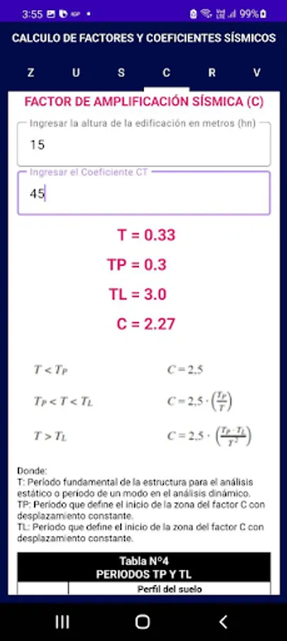 Application to perform the calculation of seismic factors and coefficients for the earthquake-resistant design of buildings according to standard E-030 (2018) of the Peruvian National Building Regulations.