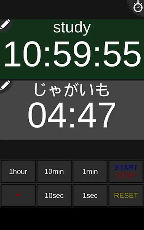 ・勉強用、仕事用、キッチンタイマー、発表などのプレゼンテーションや、二人分以上のスポーツのタイム測定など幅広い時間計測に使用可能