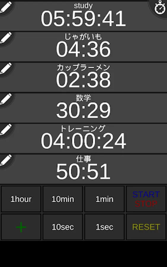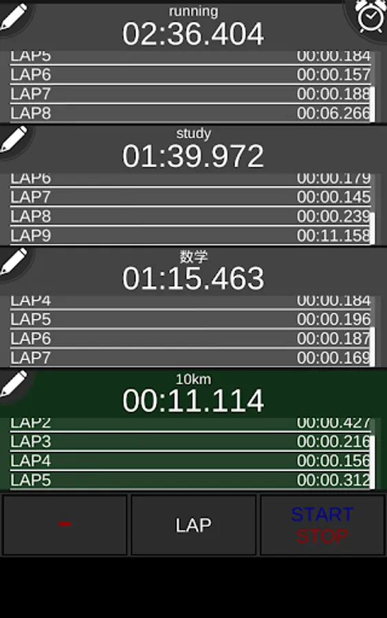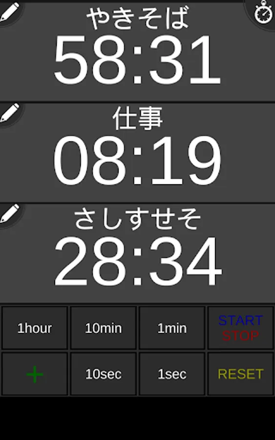 ・複数タイマー、ストップウォッチを計測、複数設定することができ、名前をつけることで簡単に区別ができる