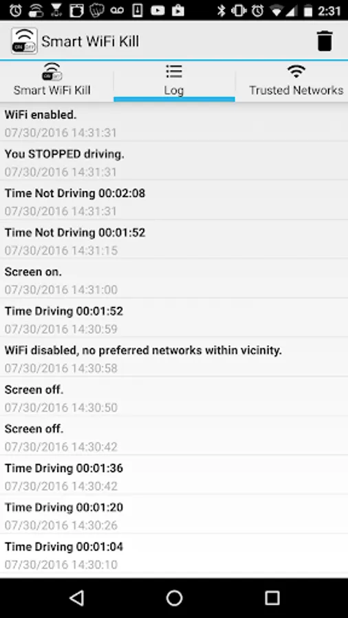 Protect your privacy and data and only connect to Trusted Networks! Simply add your trusted networks to the Trusted Network list in the app and only when one or more of those networks are nearby will your WiFi actually enable. Use the wildcard 'any' to connect to any network the name only. Or be extremely restrictive and only enable your WiFi when a network with the same name AND mac address is nearby.