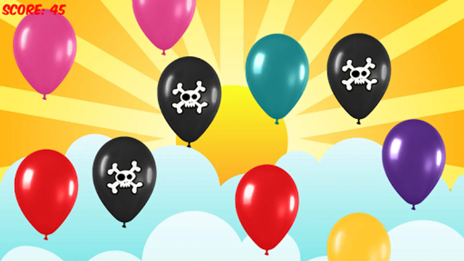 Destroy all the balloons before they disappear from the screen, but do not destroy the black ones with a skull because they will release a toxic gas that will make you lose the game. How long can you hold out?.Show off your skills!