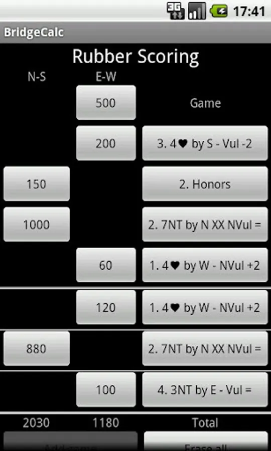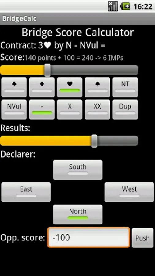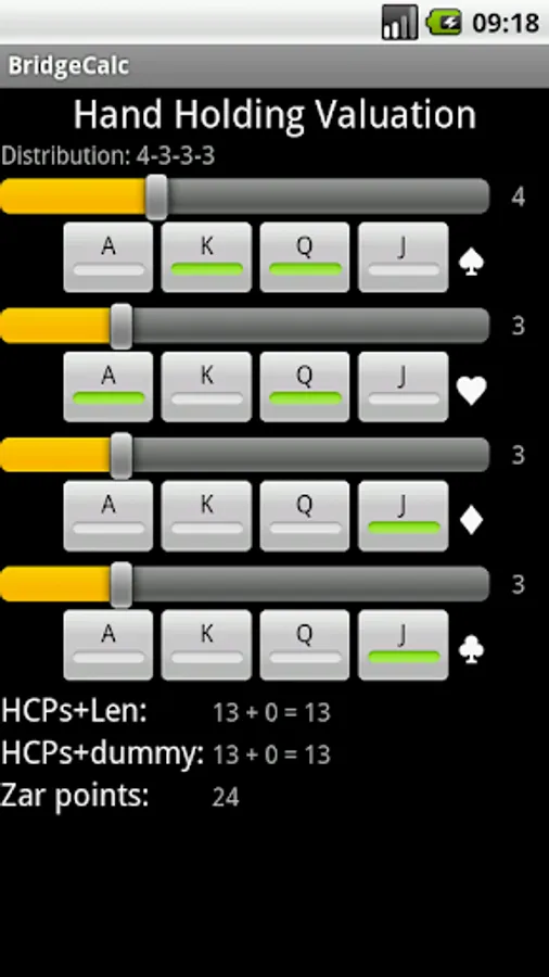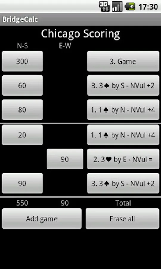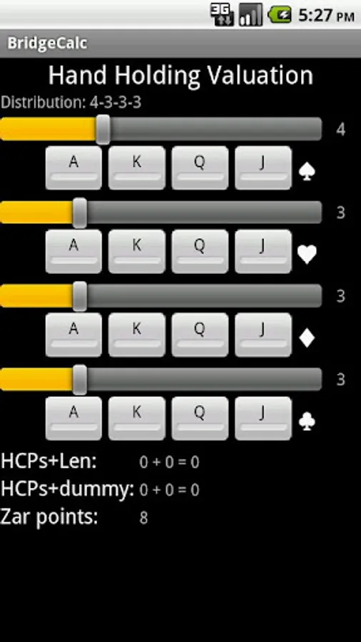 Calculates hand value using HCPs, length, dummy points and Zar points. Also calculates games scores for duplicate/Chicago and rubber. Keeps track of multiple games through a duplicate, rubber or Chicago score sheet with editing. Ad-supported.